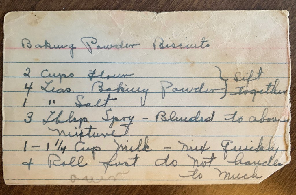 So when I was thinking of something to go with my Beef Tips Two Ways dinner a couple of weeks ago, I reached into gram’s recipes and came up with her Baking Powder Biscuit recipe and decided to give it a try.
