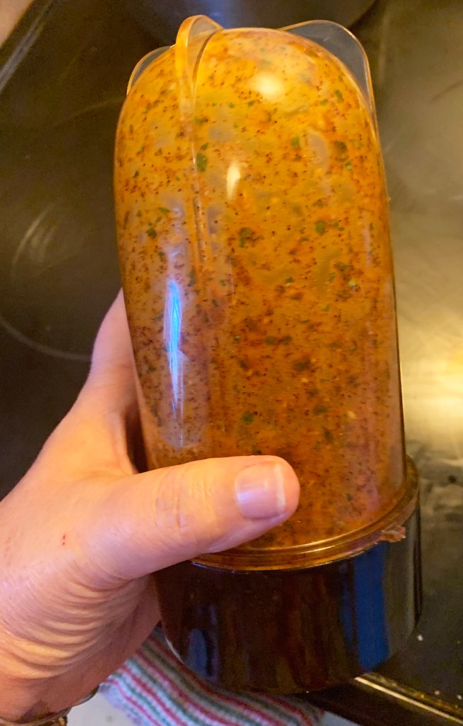 - Combine all marinade ingredients in a blender or food processor (or use an immersion blender) and process until there are no sizeable pieces.