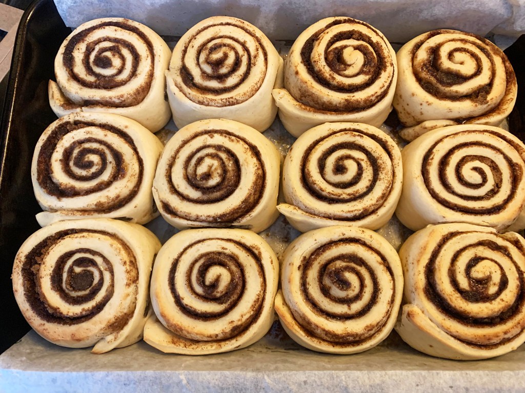 - Line a 9” x 13” pan with parchment paper. Make sure to grease parts of the pan not covered with parchment. Place rolls in pan.